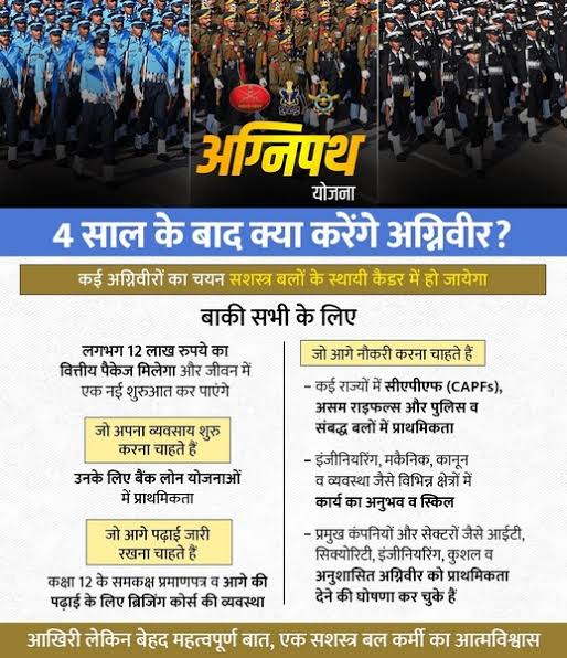 सोमवार को रक्षा मंत्री राजनाथ सिंह ने भारतीय सेना में 4 साल की नौकरी के लिए अग्निपथ भर्ती योजना शुरू की।