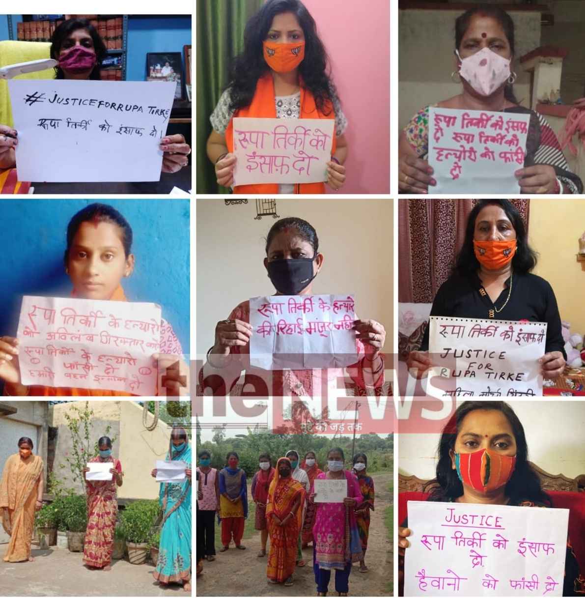 विरोध कर रही महिलाओ में अध्यक्ष जया कुमार, महामंत्री नीतू शंकर, समिता सिंह, रंजना शर्मा, भारती देवी, पूनम सिंह, अनिमा सिंह, ज्योति प्रसाद, रेखा देवी, दुर्गा देवी, अंकली बाउरी, प्रेमलता देवी, आरती देवी, सुनीता देवी एवं अन्य सभी ने एक ही बात कही की रूपा तिर्की पर बहुत ही ज्यादा अन्याय हुआ है और उन्हें न्याय दिलाकर ही रहेंगे। यहीं हमारी ओर से उनके लिए सच्ची श्रद्धांजलि होगी।