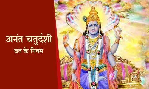 अनंत चतुर्दशी के दिन अनंत रूप में हरि की पूजा होती है। लेकिन अनंत बांधने के लिए नियम बहुत खास होते हैं। स्त्रियां अनंत को बाएं हाथ में तथा पुरुष अनंत को दाएं हाथ में बांधते हैं। अनंत राखी की तरह रूई या रेशम के कुंकू रंग में रंगे धागे होते हैं तथा इनमें चौदह गांठें होती हैं। यह एक प्रकार की व्यक्तिगत पूजा होती है।