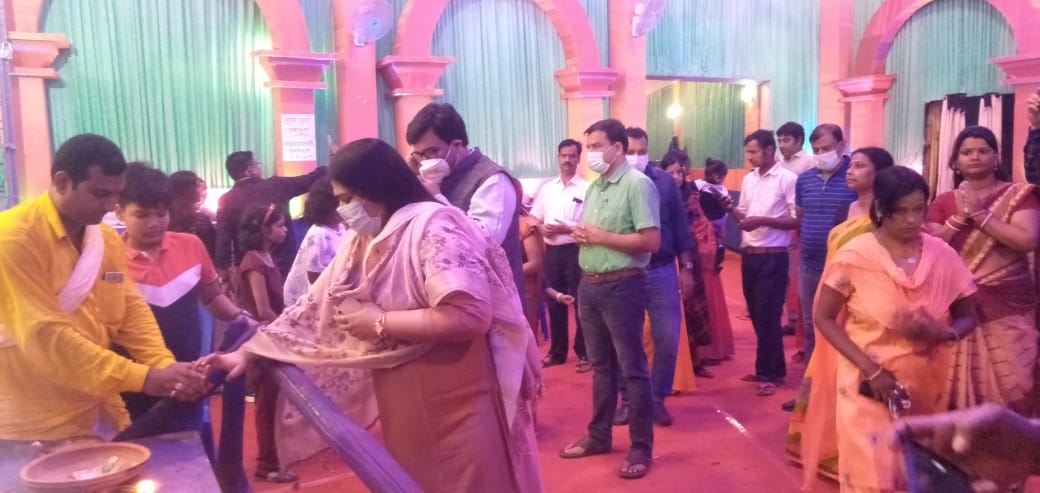 झारखण्ड/पाकुड़ : कल देर शाम पूजा पंडाल में विधि-व्यवस्था सहित कोविड-19 को लेकर जारी दिशा-निर्देशों का पालन करने की स्थिति का अवलोकन करने जेएसएलपीएस सीईओ श्रीमती नैंसी सहाय एवं डीसी श्री वरुण रंजन ने विभिन्न पूजा पंडालों का निरीक्षण किया एवं माँ का आशीर्वाद लिया।